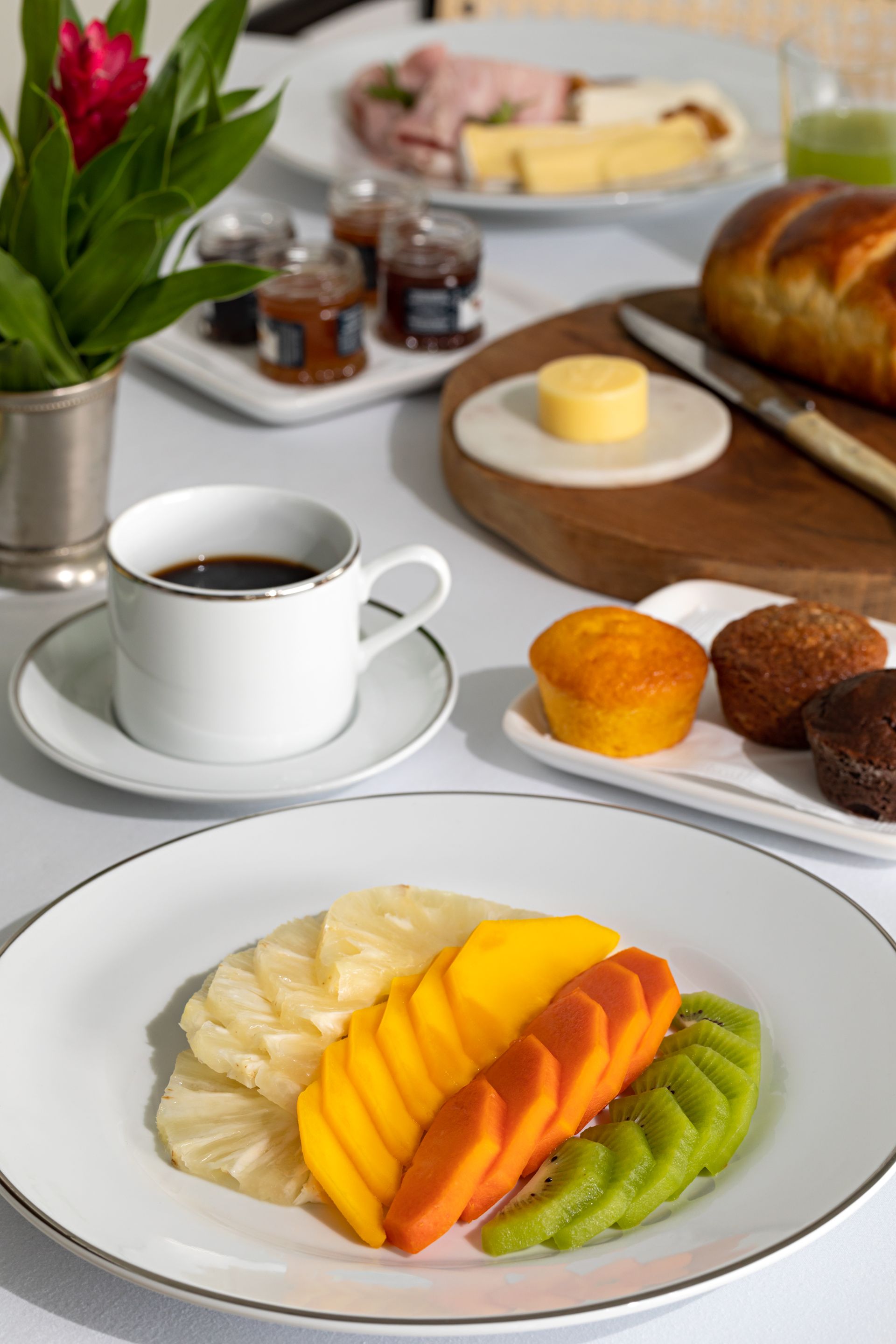 Served until 11am daily in the restaurant or on the deck. Included in the daily selection of breads, fruits, cheeses, natural juices, jams, coffee, tea and hot chocolate, as well as à la carte options such as eggs, tapioca and açaí.